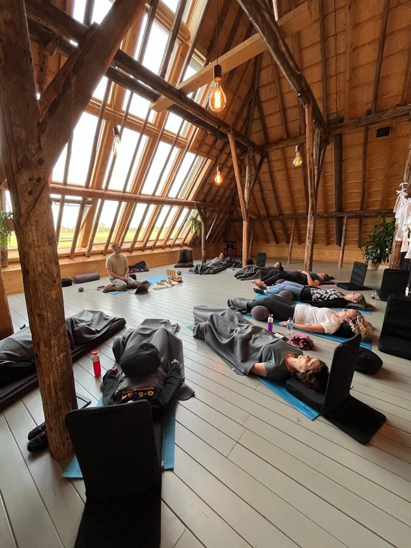 In a beautiful location in North Holland, we combine yoga, meditation, emotional well-being and personal leadership. Interwoven with enough free time, delicious vegetarian food and the quiet power of being outside. Small in design (10–16 participants), with enough space for both stillness and sincere connection.